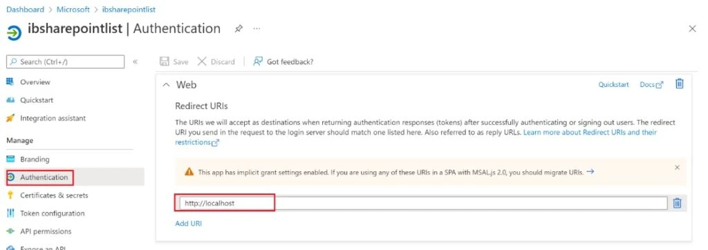 Select Authentication in the new page and check the Accounts in any organisational directory (any Azure AD directory – Multitenant) box.