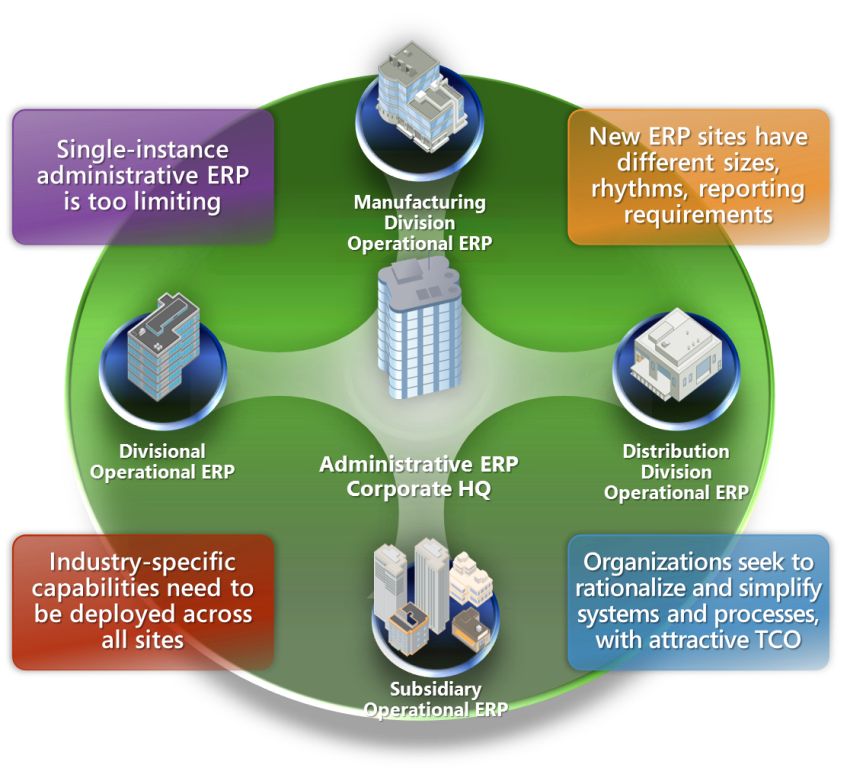 - Establishing consistent processes and best practices with same solution. Microsoft Dynamics AX is an industry ready and global solution that can be deployed according to your governance model whether centralized, decentralized or federated. This allows you to implement core configurations quickly and easily integrate with your administrative ERP.