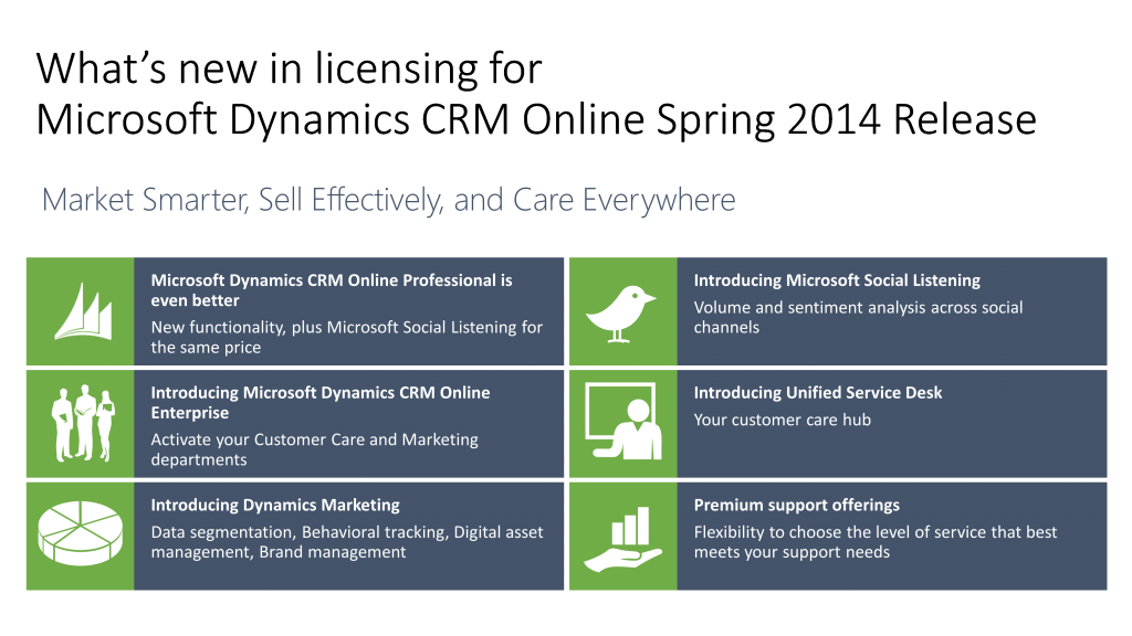 Following our announcement of the new capabilities that will be released in Microsoft Dynamics CRM Online during the second quarter of 2014, and as we welcome our customers and partners to Convergence 2014 in Atlanta, we are excited to share updates to pricing and licensing plans for Microsoft Dynamics CRM Online.