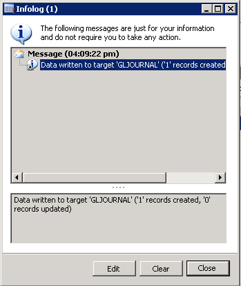 2. JournalNum = JN000421 (Value from step 12)
