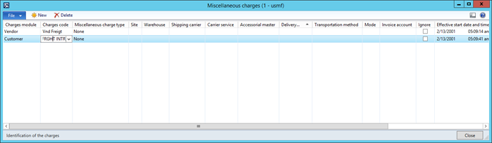 • Create a line where charges module is Customer, Charges code is FRGHT INTR, charge type is None