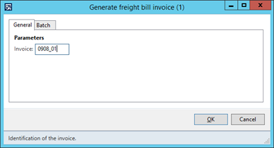 14. Click generate freight bill invoice, enter an invoice number, e.g. 0908_01 and click Ok