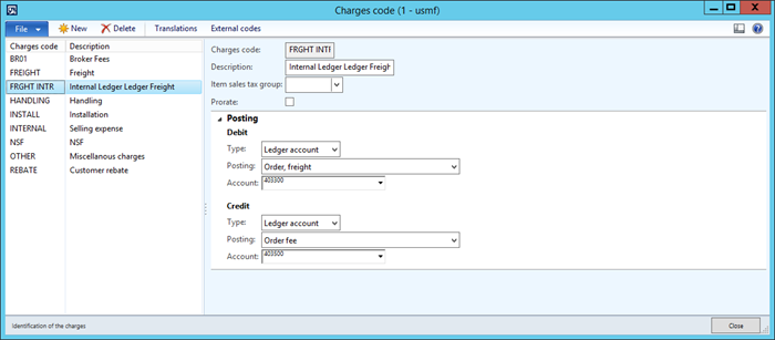 • Since the TMS freight functionality is based on the use of charges linked to orders, it is necessary to have a charge associated with the sales line if we want to generate freight bills and invoice journals later on, even though we are not charging the customer. This also means that General Ledger transactions will be recorded for freight charges.