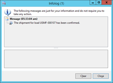 11. Once work is closed, in Load planning workbench form, press Ship and receive -> Outbound shipment. Shipment is confirmed.