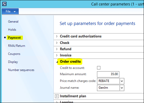 Optional note: Another refund scenario to consider in place of issuing a straight up refund to a customer’s credit card is to issue an account credit for future orders or a check refund process to track refunds. I have seen both of these being used by businesses, which can help deter fraud returns. The refund terms are normally defined in additional sales agreement verbiage. This also allows for additional return options in AX outside of the credit card processing limitations.