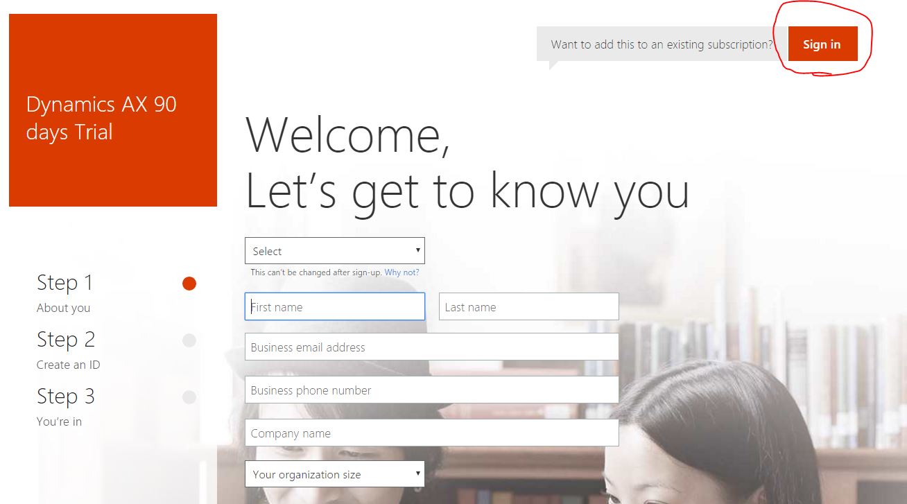 Firstly, you need an offer code to enable Dynamics AX for your organization account. For this, if you are an existing customer you can find details on how to get to the preview offer code from here and partners can find the details here.