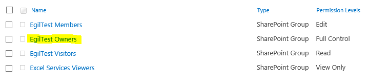 In Site permissions click the link to the Site Owners group.