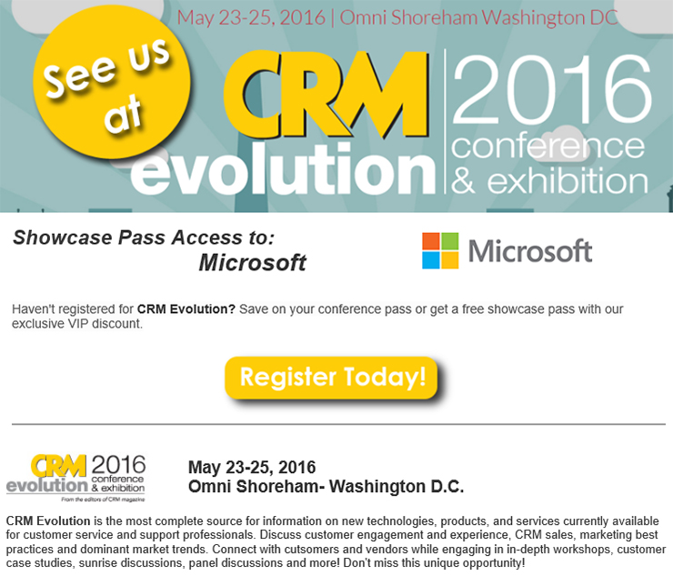 For Microsoft customers interested in attending CRM Evolution, we invite you to use our sponsor discount which can be found here. We hope to see you there!