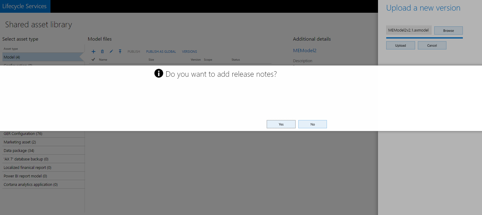 Click Yes to add release notes.