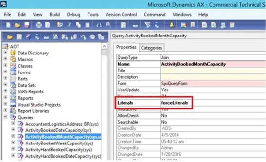 Plan guides provide the option to add query hints to the queries from AX without needing to make any changes in the application itself, such as OPTION (RECOMPILE) and OPTIMIZE FOR. However the statement must exactly match the query being executed for the plan guide to be used. For example: