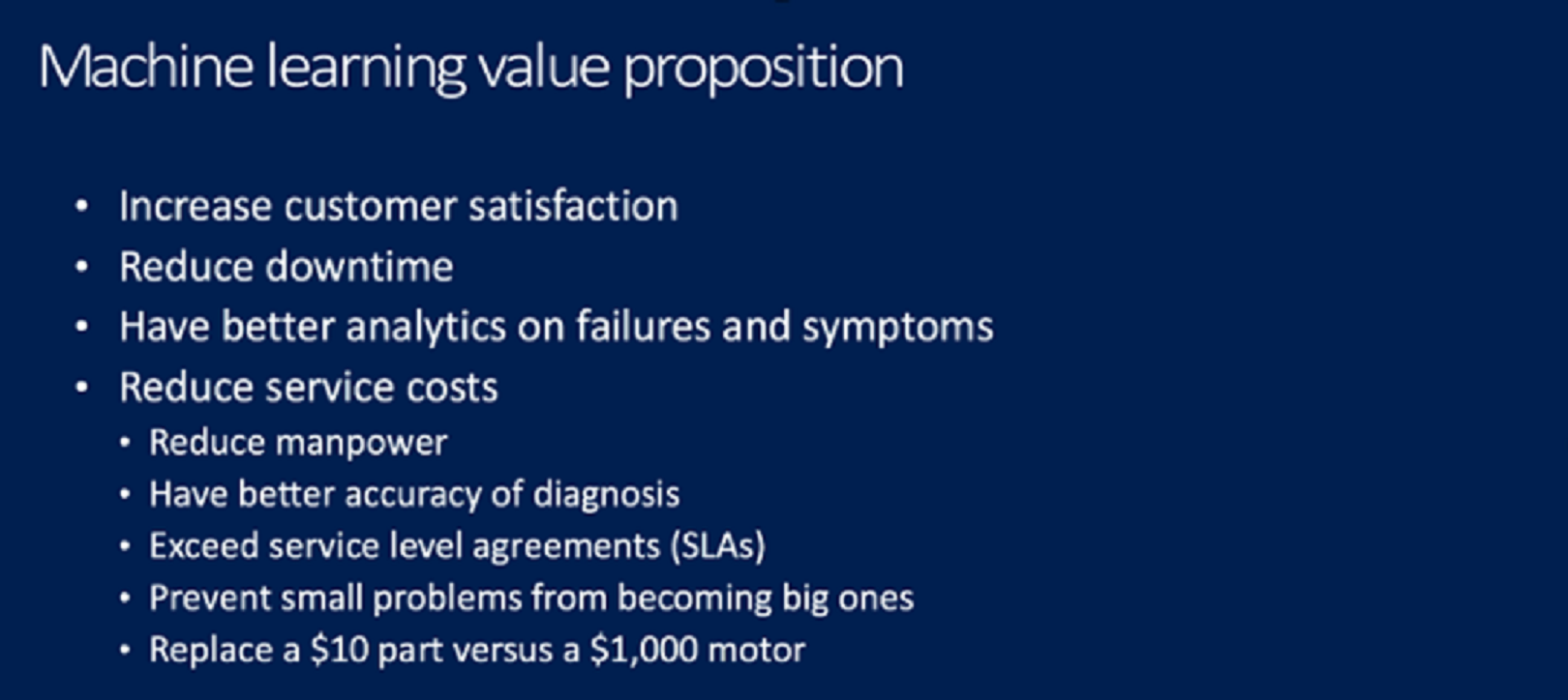 ‘Machine learning’ is a specific form of IoT, but the benefits on this slide can apply to IoT adoption questions as a whole. You can use this to help a decision-maker answer, “What’s the value proposition for us here?”