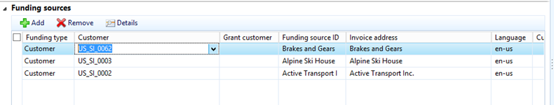 - In the Project Contracts form, expand the Funding Sources fast tab.