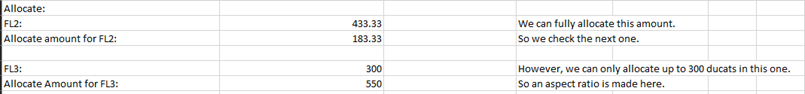 So, it runs into the problem of allocating the 550 to FL3. It can only allocate up to 300 due to the limit. FL2 can pull in the full 183.33,