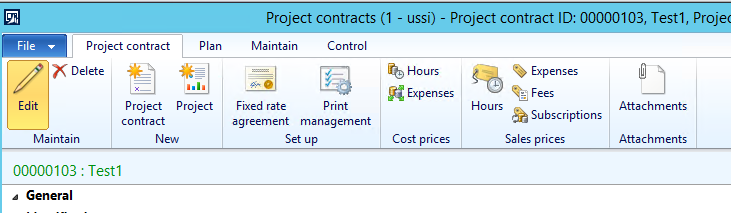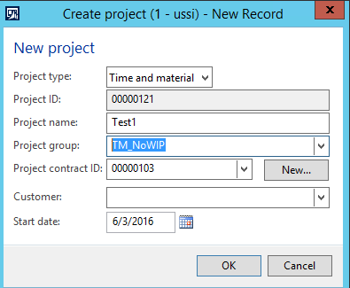 - Back in the Project Contracts form, click Project Contract -> New -> Project.