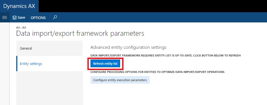 Select Entity Settings, and click “Refresh entity list”