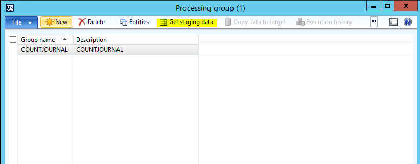 d. In the Processing group form, click on the ‘COUNTJOURNAL’ Processing group, and then click the Get staging data button.
