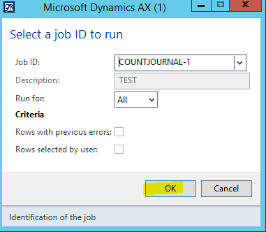 j. In the Select a job ID to run pop-up form, select the Job that you just ran, and then click OK.