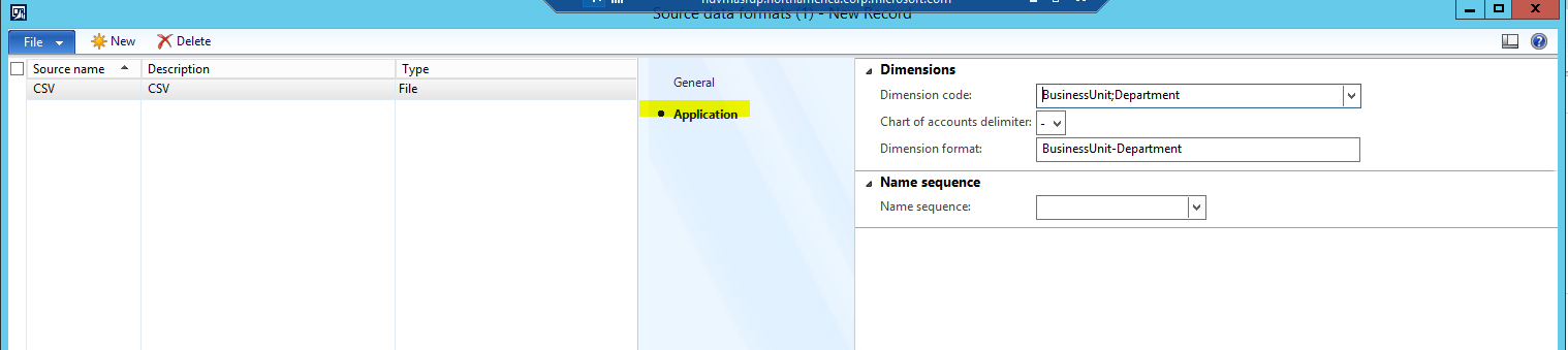 a. Go to Data import export framework | Setup | Source data formats to open the Source data formats form.
