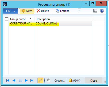 c. Go to Data import export framework | Common | Processing group to open the Processing group form.