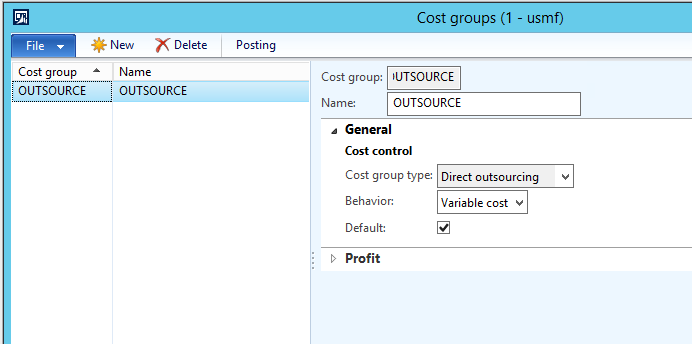 Cost group type = Direct outsourcing