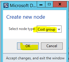 - In the Create new node form, select ‘Cost group’ in the Select node type, and then click OK.