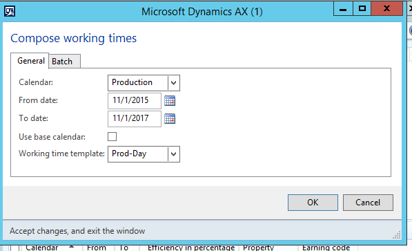 - Close the Working times and Working time calendars forms