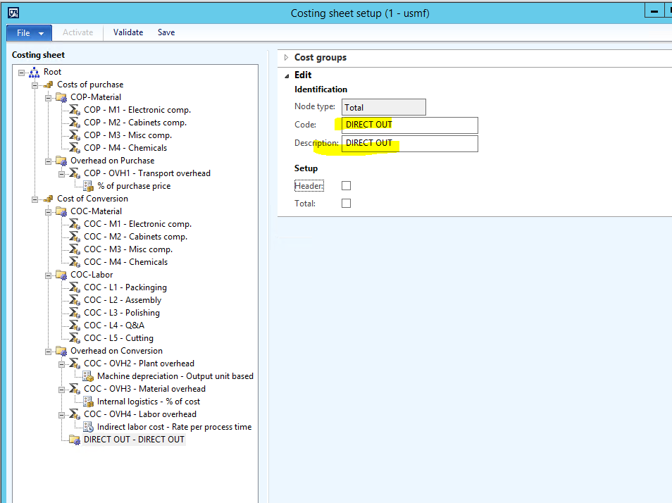 - Go to Inventory management | Setup | Costing | Costing sheets.