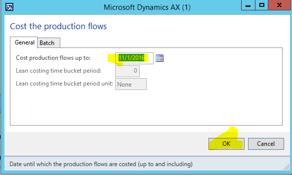 - In the Cost the production flows form, enter Today’s date in the Cost production flows up to field, and then click OK.