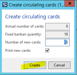 - In the Create fixed quantity kanbans pop-up form, enter the following, and click Create: