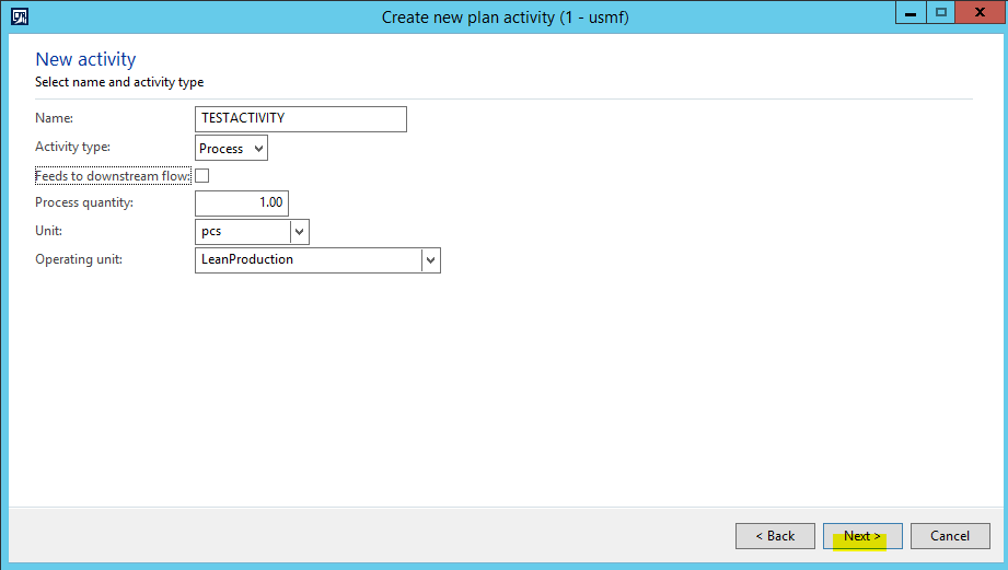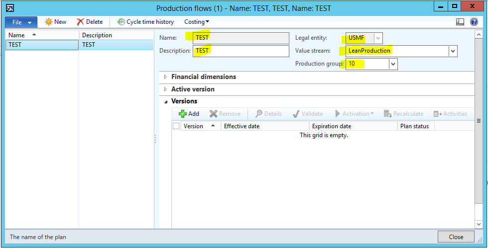 - Close the Activity details and Production flow activities forms.