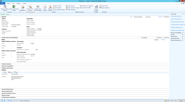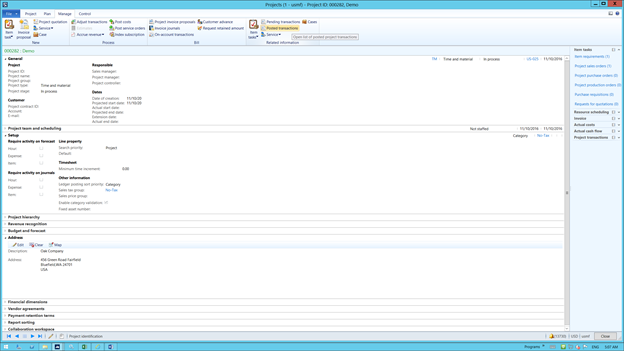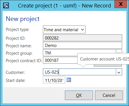 Project contract ID: 000187(comes automatically based on number sequence setup)