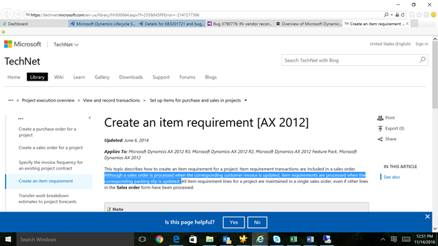 We see that the project posted transactions are getting populate on Packing slip posting itself if we use Item requirements which is correct