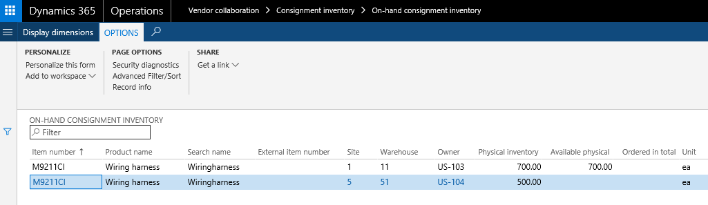 Note: The current legal entity owner is created automatically. In this case, the owner dimension value is USMF for all processes that are not related to consignment inventory.