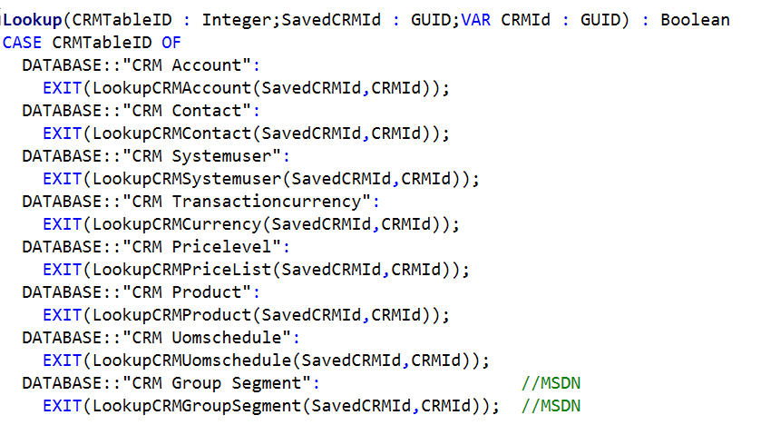 - Handle the lookup to the CRMTable by changing Codeunit 5332 “Lookup CRM Tables” function Lookup and creating a brand new one: LookupCRMGroupSegment