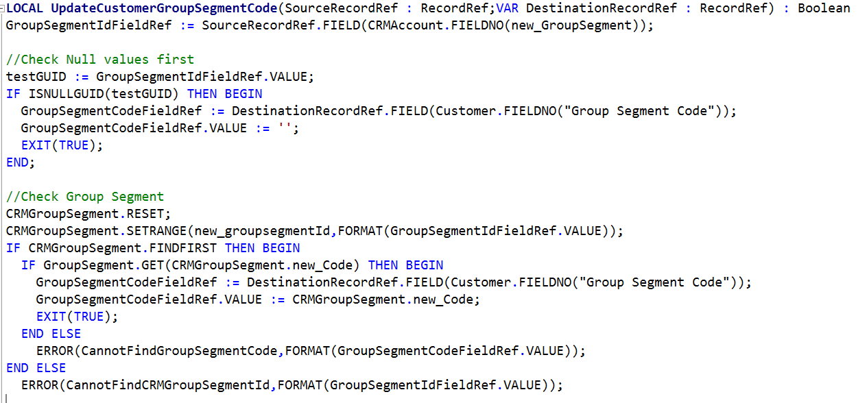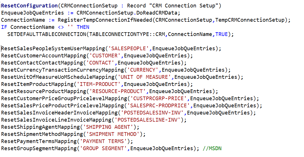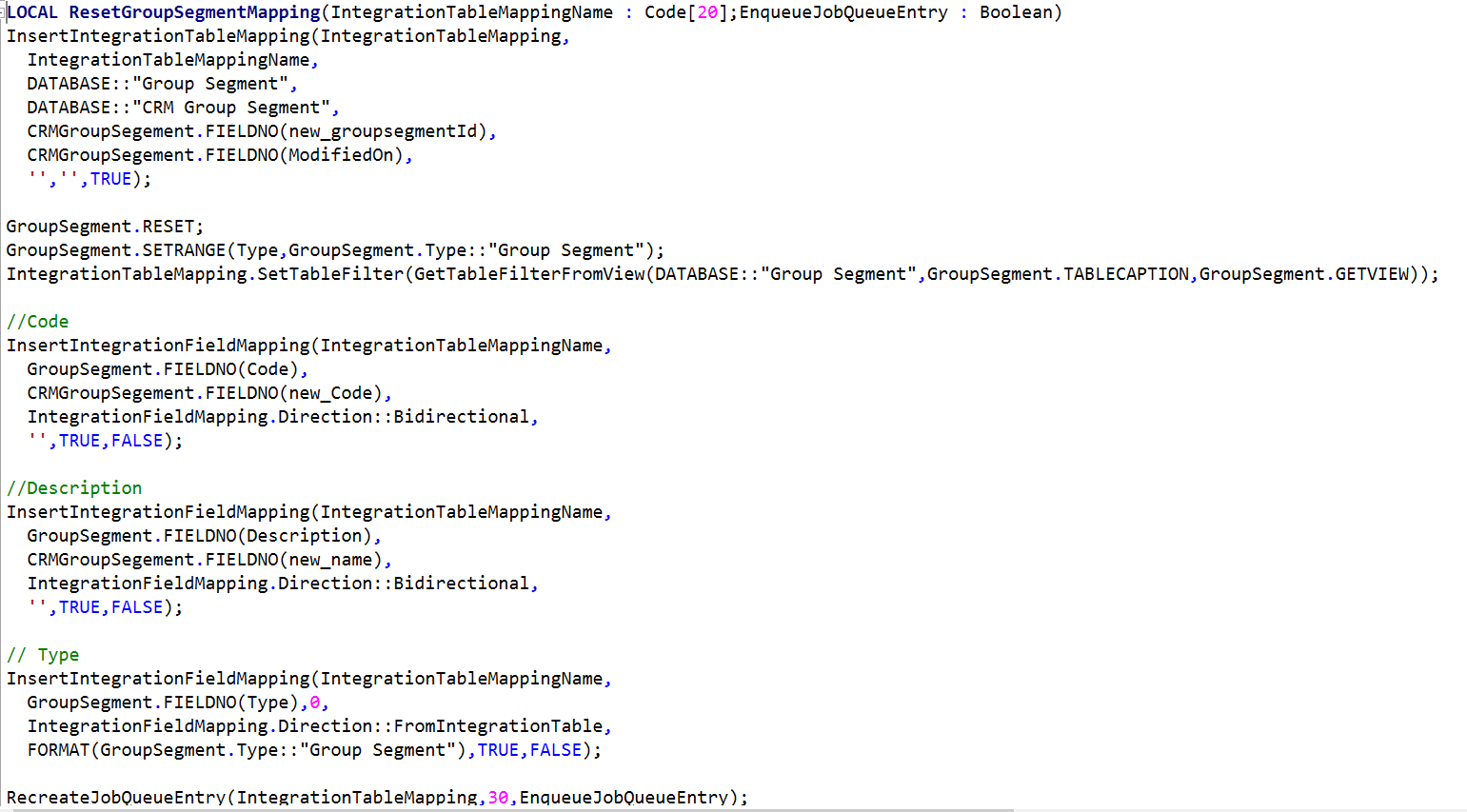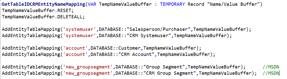 - Set up Defaults to automate the creation of Table/Field mappings and Job Queue automagic enablement. Change the following functions in Codeunit 5334 “CRM Setup Defaults” and create a new one: RestGroupSegmentMapping