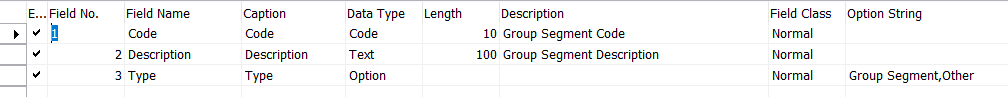 - Create a Dynamics NAV supplemental table: Group Segment