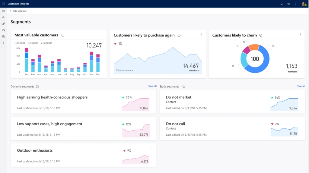 - Based on the analysis of unified customer profiles, Customer Insights makes AI-driven recommendations when building segments.