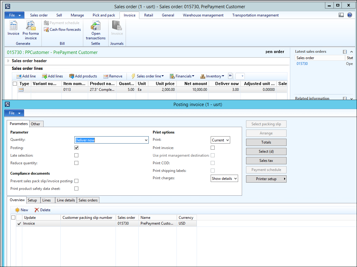 3. Partially Invoice the Sales order.
