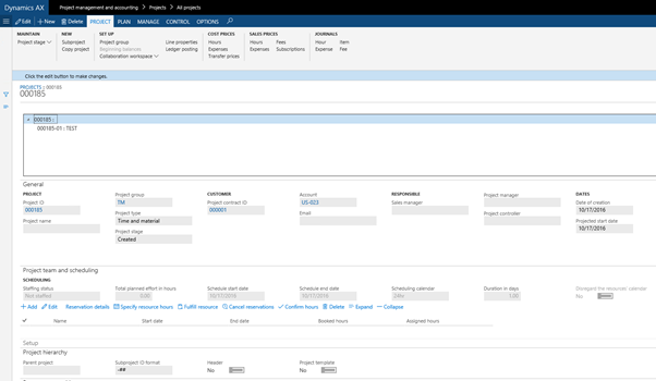 When entering a General Journal using this subproject as the financial dimension an error of “Dimension value XXX does not exist” is encountered.