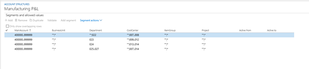 Create the chart of accounts on the Chart of accounts page. Main accounts can be created from the Chart of accounts page or the Main accounts page. Your main accounts shouldn’t use any special characters that are used as chart of accounts delimiters. If you do have a special character that is the same as your chart of accounts delimiter, you may experience instability, or the need to always use lookups or the flyout when entering account and dimension combinations.