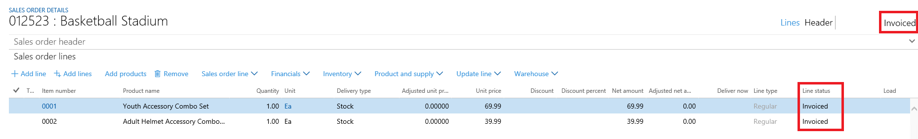 Note: The Sales order was created with the Customer Order operation, so it was created with the Real Time Service.