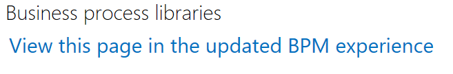 To access the new Business process libraries page, go to your project, click the Business process modeler tile, and then click View this page in the updated BPM experience.