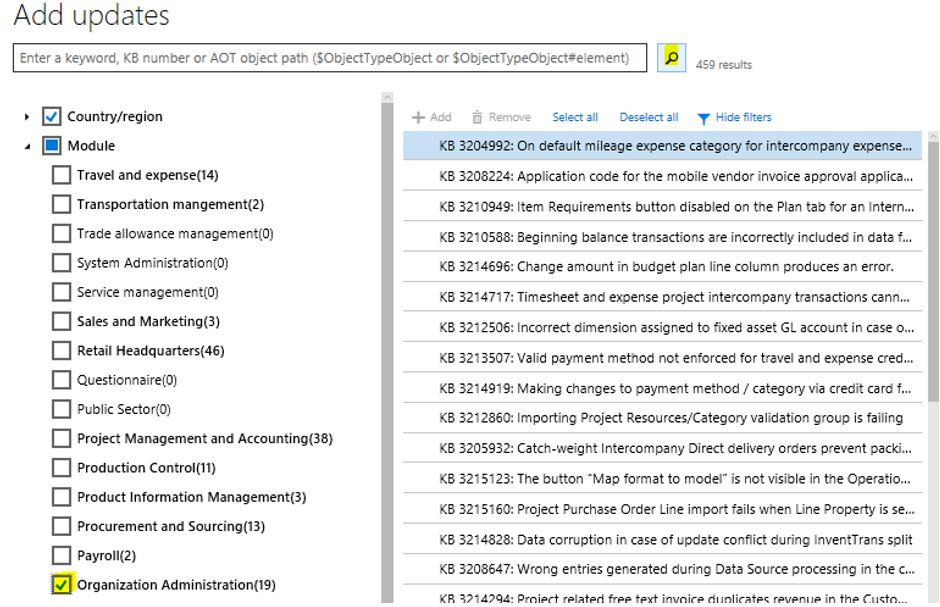 - Open Module and unmark all, then mark Organization Administration and search
