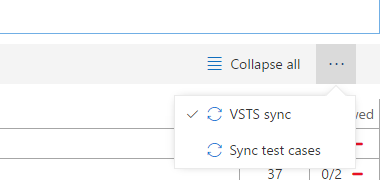 After a VSTS sync is completed, a new option, Sync test cases is available on the ellipsis menu. If you select VSTS sync, the synchronization process starts and a test case work item is created in your VSTS project for each task recoding in your BPM library.