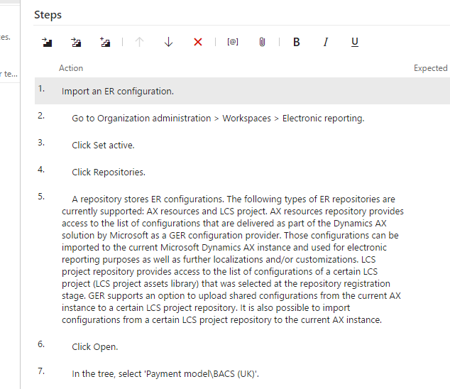 - Task recording steps will also be details in VSTS as test cases steps. This is shown in the following graphic.