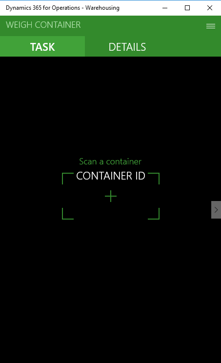 At this point I have a fully functional custom workflow that will display the new fields correctly in the mobile app. You can see the container input field and weight input below. Note that if you want to have the weight field display the “scanning” interface you can change the “preferred input mode” for the Weight EDT on the “Warehouse app field names” screen within the Dynamics 365 environment itself.