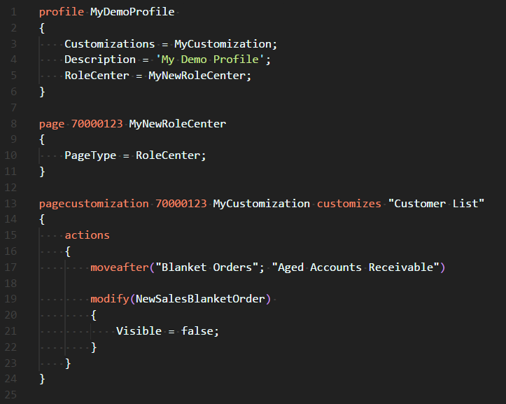 - We announced the availability of tenant-specific profiles with our June update. We now offer new AL object types; Profile and Page Customization. These new objects let you define a set of pre-defined profiles and include them in your extension. The Page Customization object is very similar to a Page Extension object, but more restricted. As of now Page Customization can only include moving of controls and actions as well as setting Visiblity to true/false. It cannot contain variables, functions, or triggers.