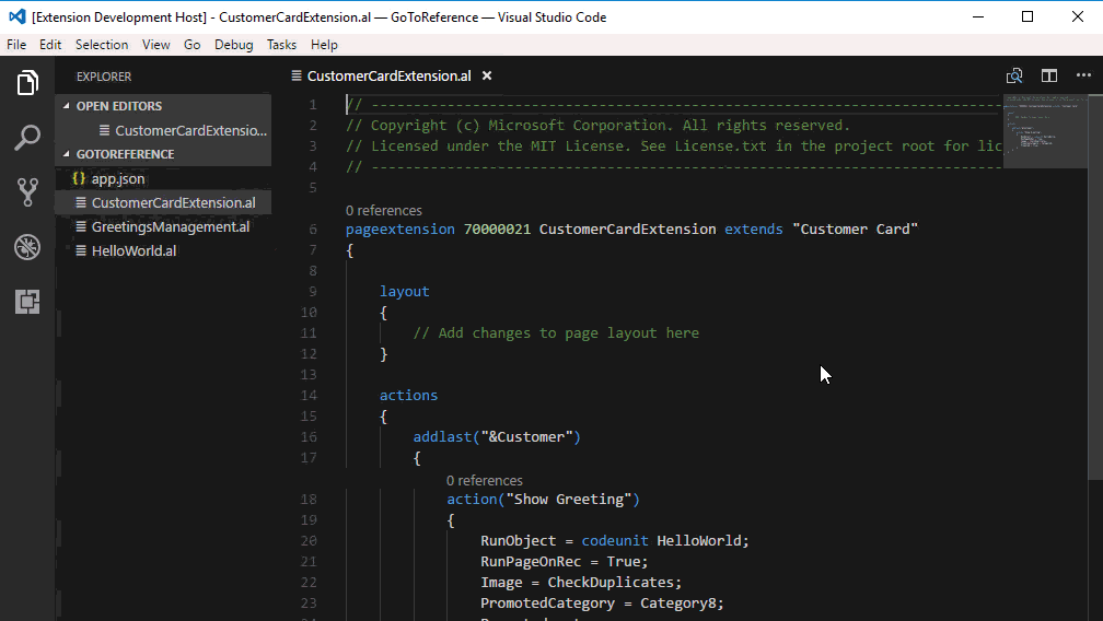 • The popular “Go To Definition” for dependencies gives you a generated version of the application objects, such as which fields a table has, and the datatypes of the fields. Simply place your cursor on the type and press F12.
