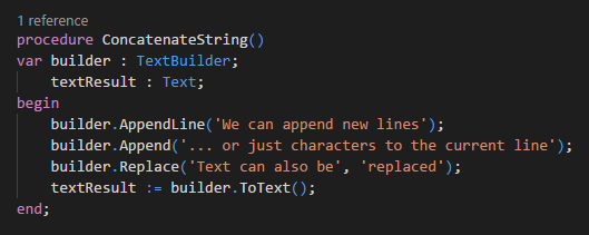 • We continue to add replacements for highly requested .NET types. This update adds a new AL type, TextBuilder, that wraps the most commonly used functionality of the System.StringBuilder type in the .NET Framework.