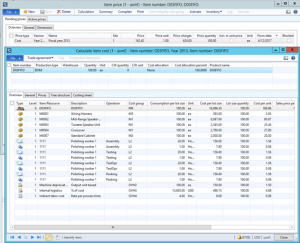 - Cost calculation is completed for a quantity of 100.00 of the finished good resulting in a cost per lot size of $16,886.35 or cost per unit for the subassembly of $168.86.